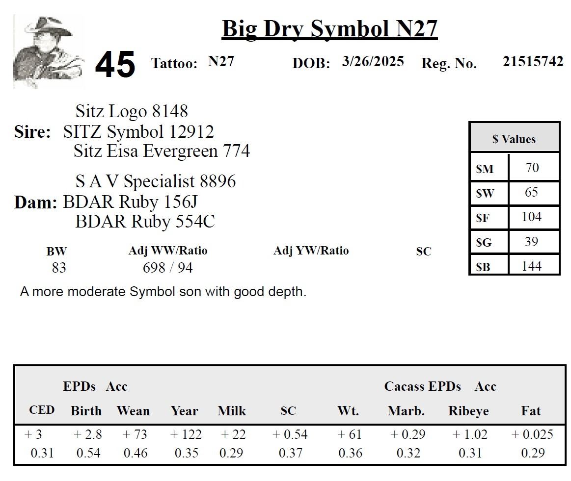 All persons who attend this sale do so at their own risk, legal or otherwise. Big Dry Angus assumes no liability for property loss or accident that may occur.