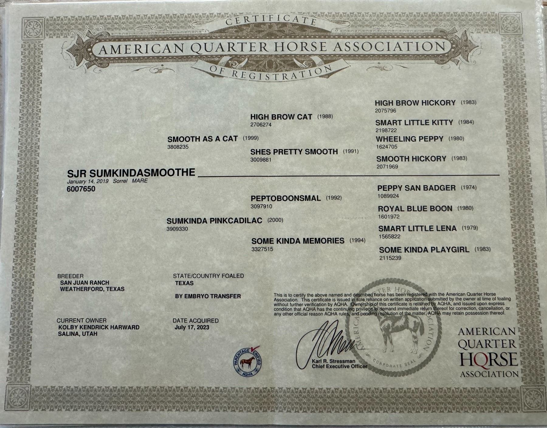 This mare is an outstanding investment for any program. She began her career in the cutting pen, where she found early success, and has since transitioned to the roping pen where she has truly excelled as a head horse. She is big, stout, and built to last, with eye-catching presence and excellent conformation. This is a flashy mare that stands out wherever she goes, backed by tons of motor, natural power, and the kind of ability that is hard to find. Her pedigree only adds to her value. She has three full siblings that have earned over $100,000 in the cow horse, proving the consistency and strength of this line.Whether you’re looking for a high-level performance horse or a long-term addition to your breeding program, this mare checks every box. Opportunities like this don’t come around often. She truly represents a buy-of-a-lifetime kind of horse. Can hold for 2 weeks and meet the buyer or transporter within 250 miles. LOCATION: Salina, UT. VIDEO: Contact Seller. FMI: 435-590-1617.