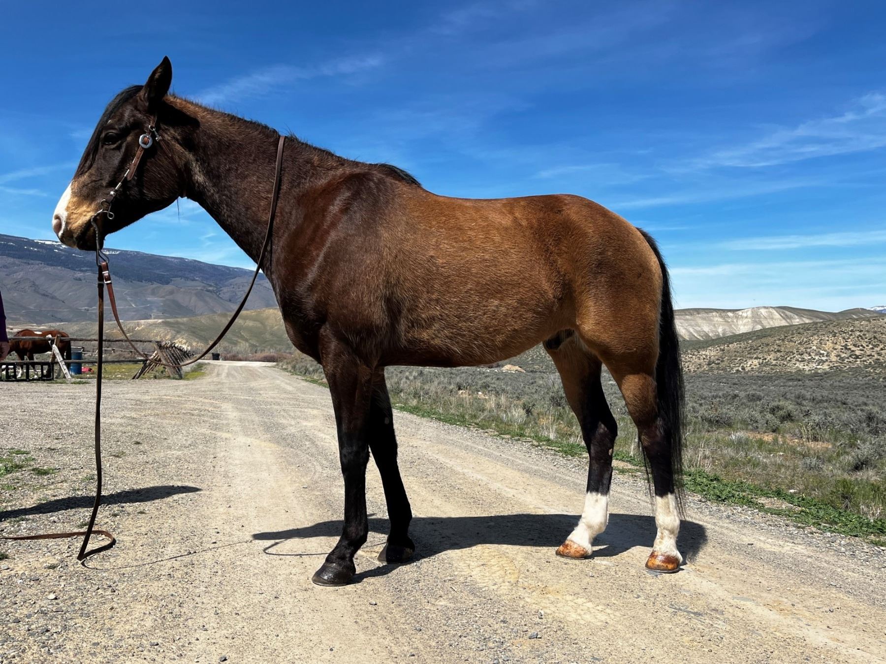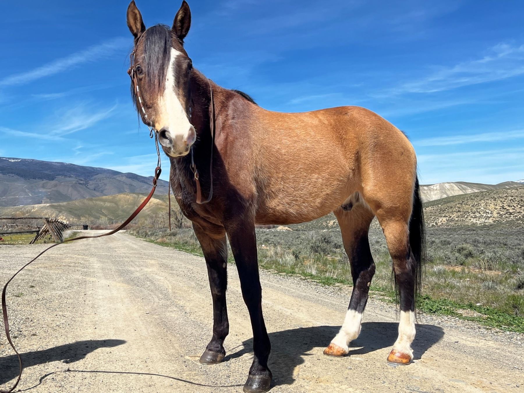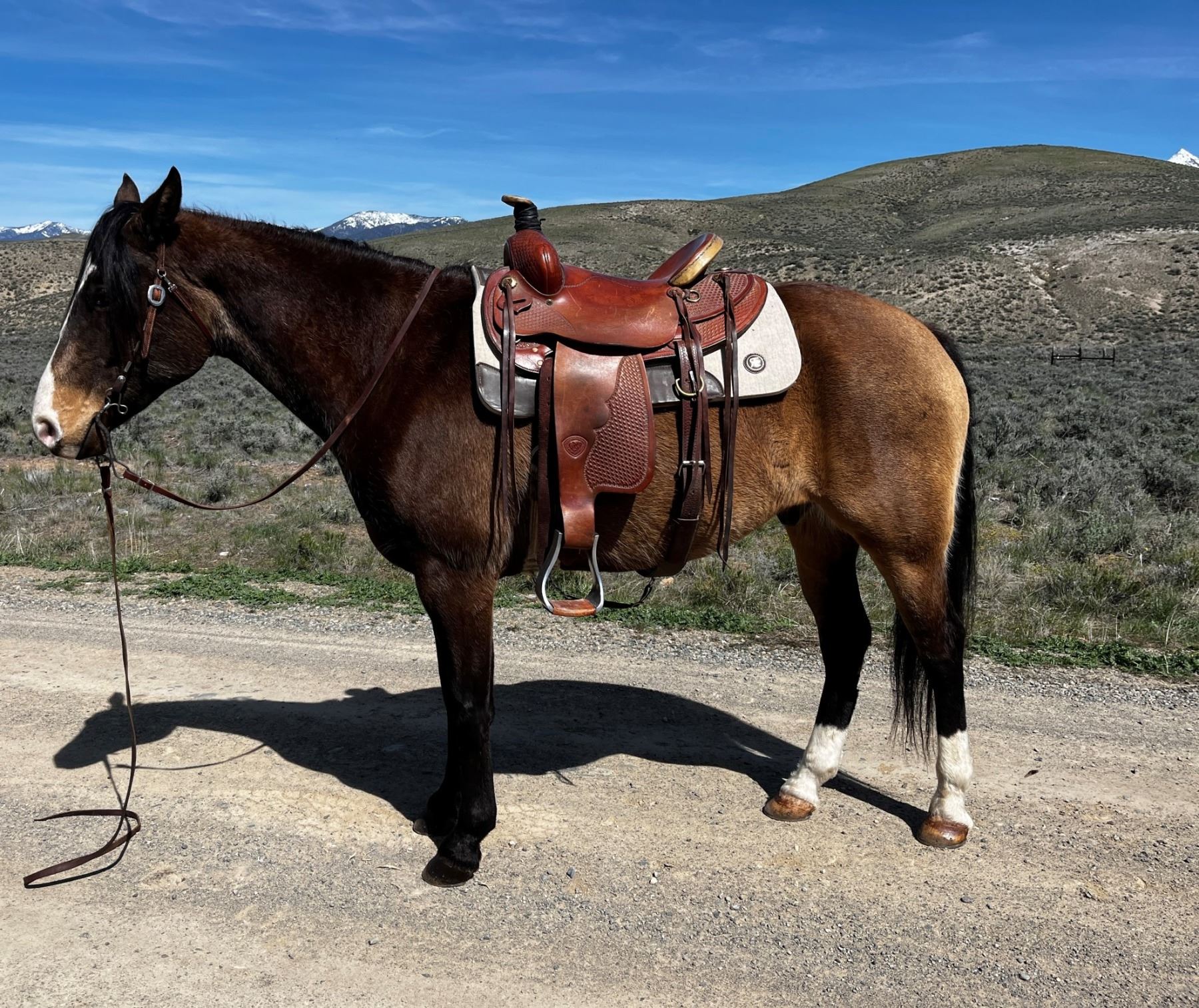 Smokey has mainly been used for trail riding in the mountains and hills of Carmen, ID where he has proven to be steady and reliable when in a group. He has also been introduced to moving cows and roping and shows a lot of promise. He is very teachable, willing and ready to go in any direction-whether that’s ranch work, more cow experience, or continue trail riding. Smokey is the kind that will make someone a very handy, all-around horse. If you have a steady job for him, he will be a great mount. He crosses water, opens and closes gates. No buck, bite, kick. Not a kids horse yet but very gentle, and a little watchy when taken out alone. He is a little herd bound. He’s UTD on deworming, shots and has new shoes. Willin to hold him for 14 days and we an deliver him up to 200 miles. LOCATION: Salmon, ID. VIDEO: https://youtu.be/vPjoNMQHwgQ FMI: 208-550-5383