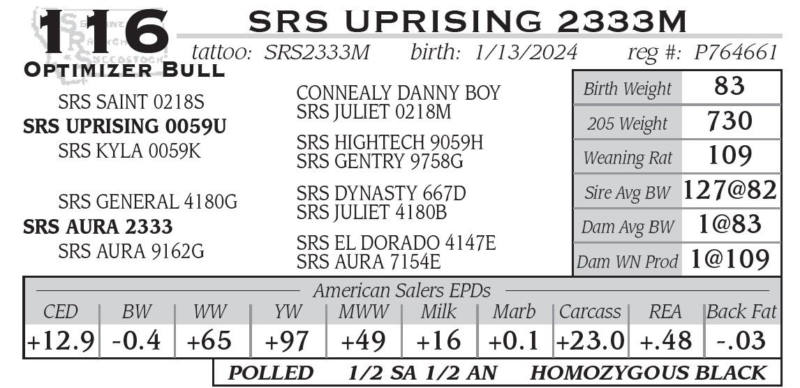 HOMOZYGOUS BLACK; 1/2 SA 1/2 AN; POLLED