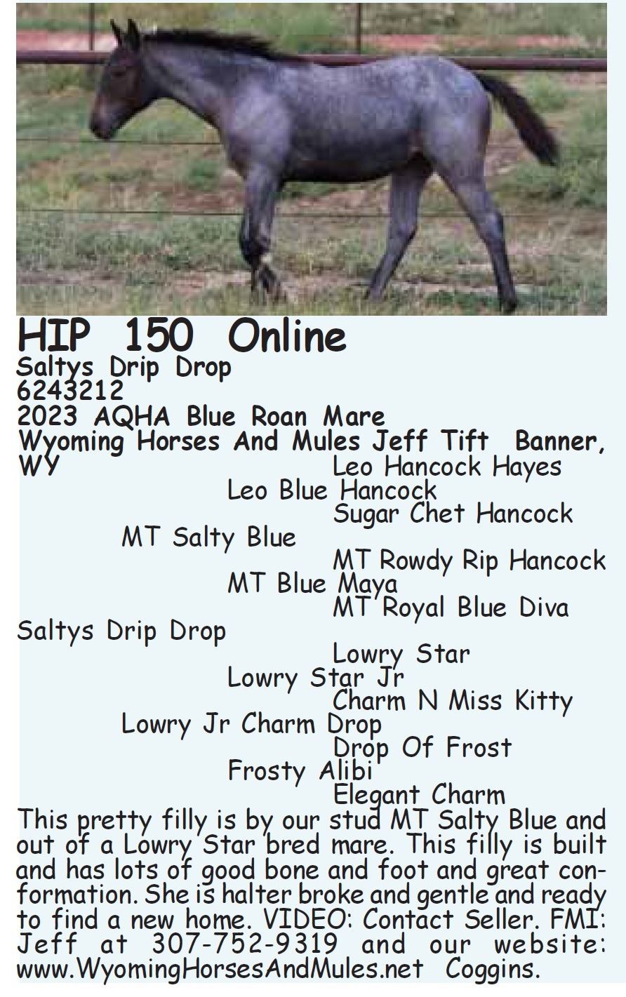 ALL OCTOBER 27-28 SALE HORSES WILL BE AUCTIONED LIVE AT BILLINGS LIVESTOCK – Internet bidding also available for Online/ ShowCase Internet Sale Session horses offered in this sale
