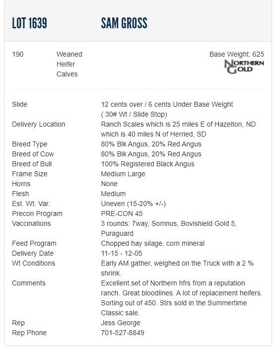Comments Excellent set of Northern hfrs from a reputation ranch. Great bloodlines. A lot of replacement heifers. Sorting out of 450. Strs sold in the Summertime Classic sale.