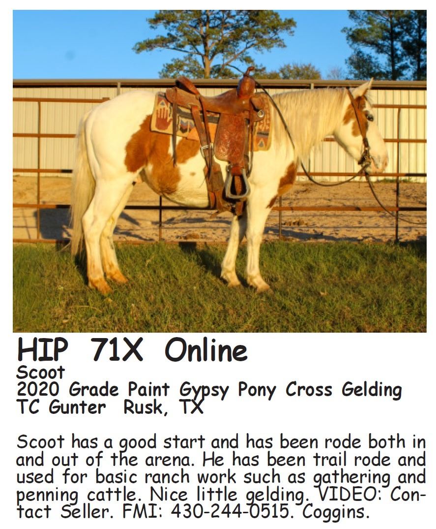 Scoot has a good start and has been rode both in and out of the arena. He has been trail rode and used for basic ranch work such as gathering and penning cattle. Nice little gelding. VIDEO: Contact Seller. FMI: 430-244-0515. Coggins.