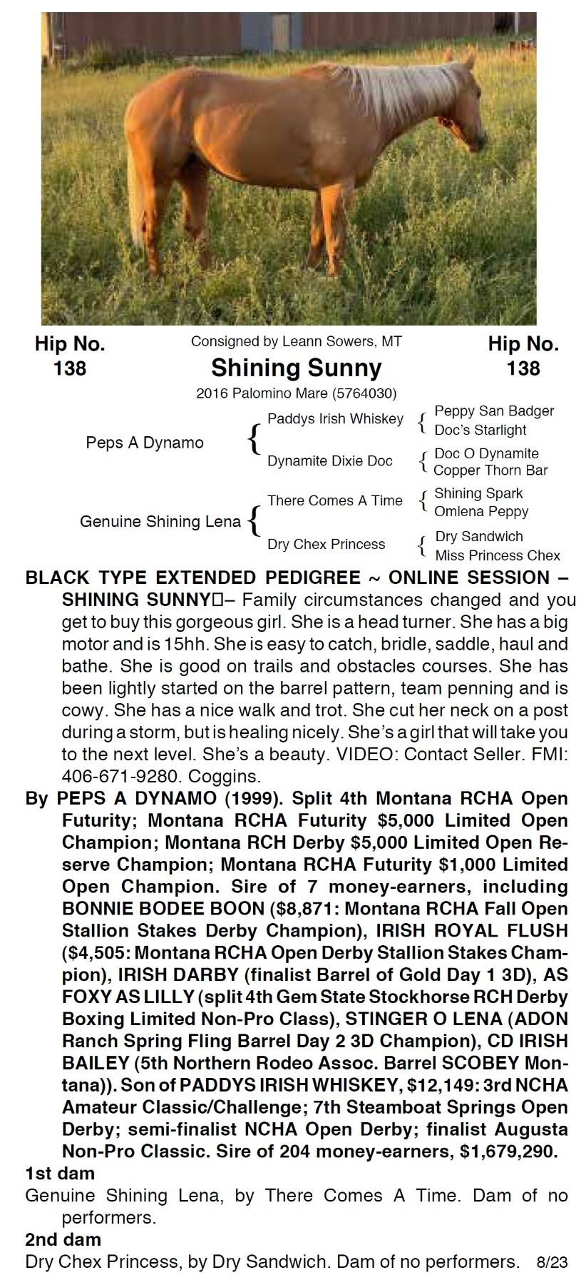 ALL AUGUST 26 SALE HORSES WILL BE AUCTIONED LIVE AT BILLINGS LIVESTOCK – Internet bidding also available for Online/ ShowCase Internet Sale Session horses offered in this sale