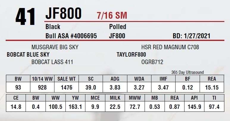 Sire: BOBCAT BLUE SKY