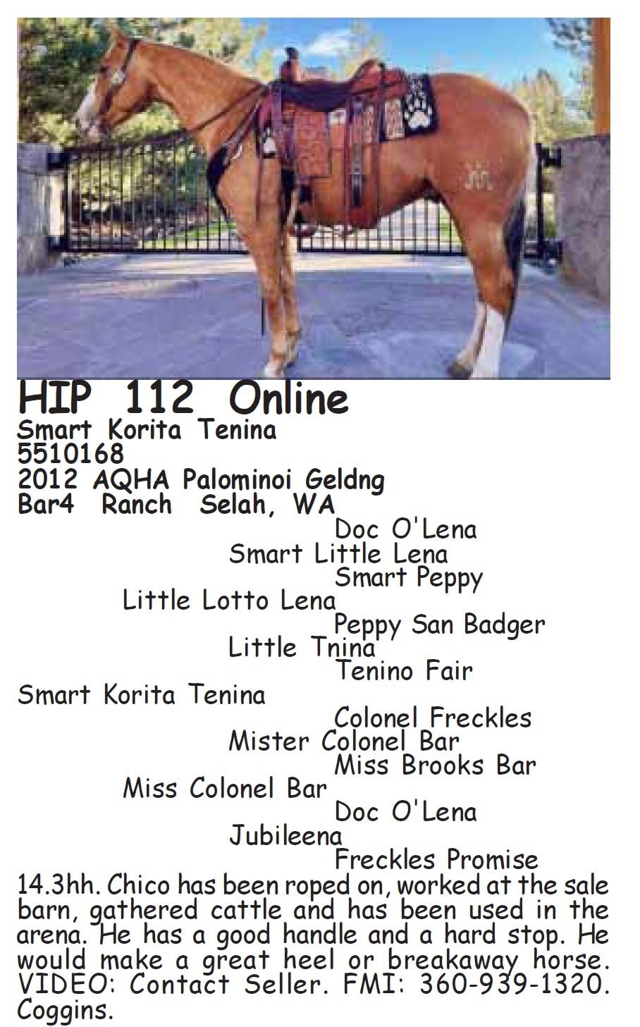 12 NOON: SALE TIME ON CATALOG HORSES