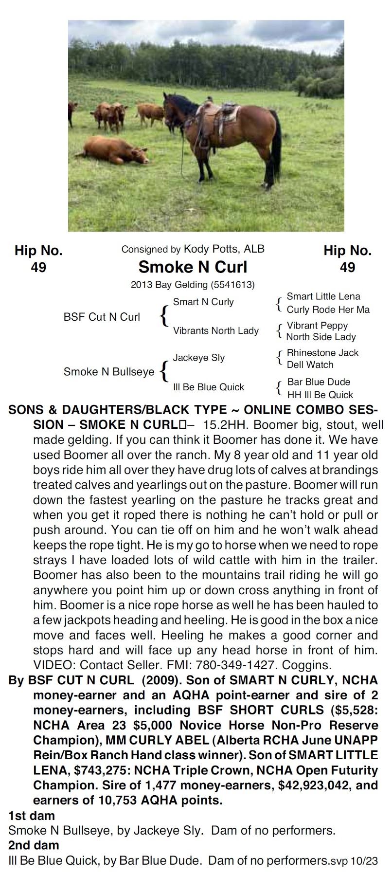 ALL OCTOBER 27-28 SALE HORSES WILL BE AUCTIONED LIVE AT BILLINGS LIVESTOCK – Internet bidding also available for Online/ ShowCase Internet Sale Session horses offered in this sale