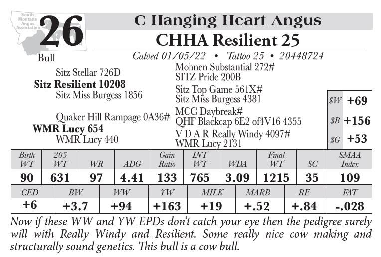 All persons who attend this sale do so at their own risk, legal or otherwise. South MT Angus assumes no liability for property loss or accident that may occur.