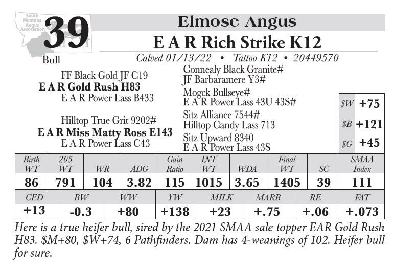 All persons who attend this sale do so at their own risk, legal or otherwise. South MT Angus assumes no liability for property loss or accident that may occur.