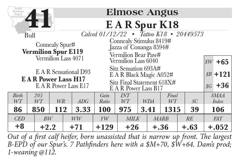 All persons who attend this sale do so at their own risk, legal or otherwise. South MT Angus assumes no liability for property loss or accident that may occur.