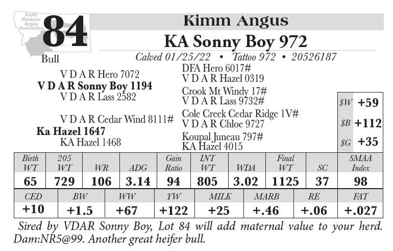 All persons who attend this sale do so at their own risk, legal or otherwise. South MT Angus assumes no liability for property loss or accident that may occur.