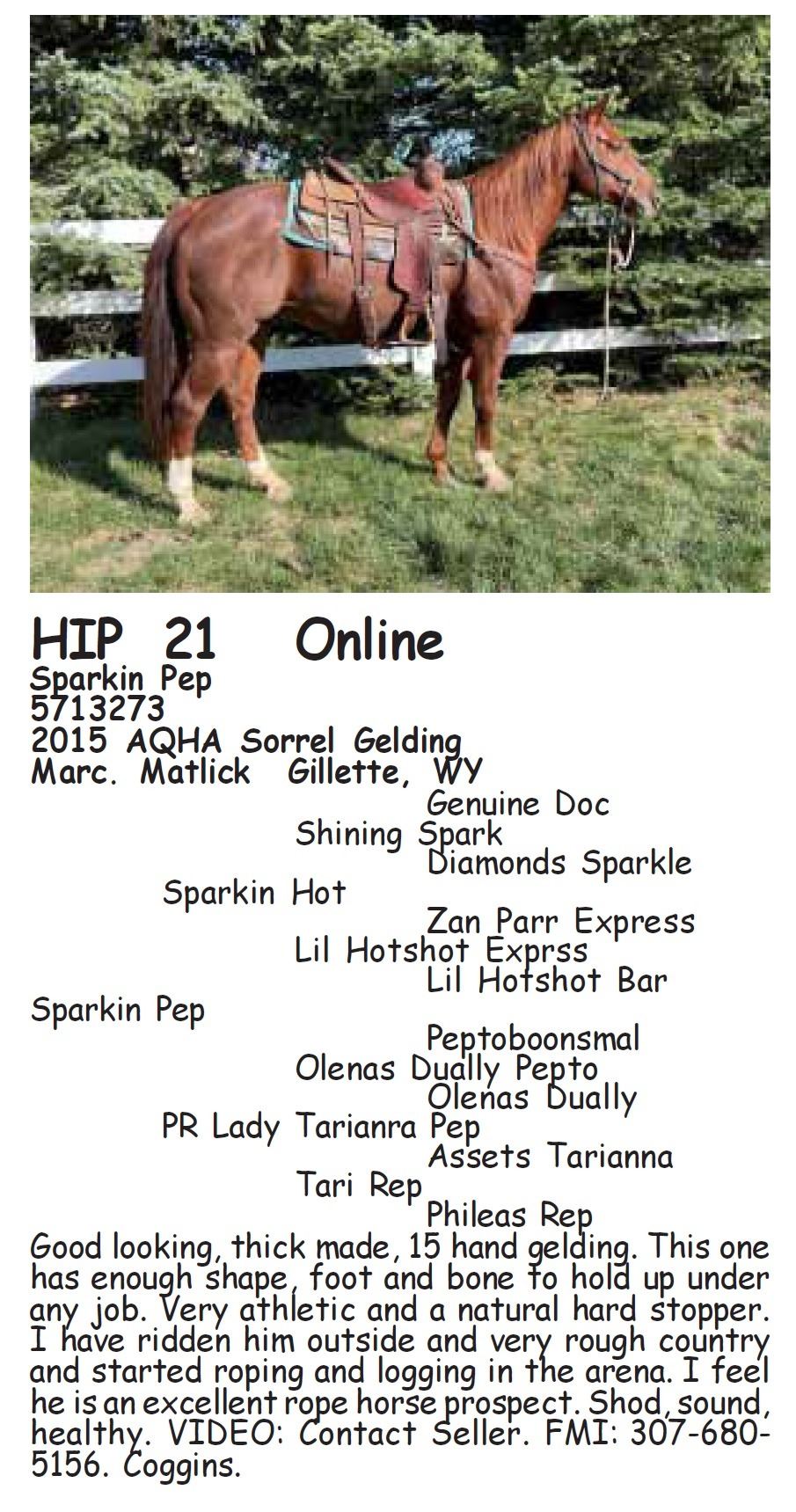 ALL OCTOBER 27-28 SALE HORSES WILL BE AUCTIONED LIVE AT BILLINGS LIVESTOCK – Internet bidding also available for Online/ ShowCase Internet Sale Session horses offered in this sale