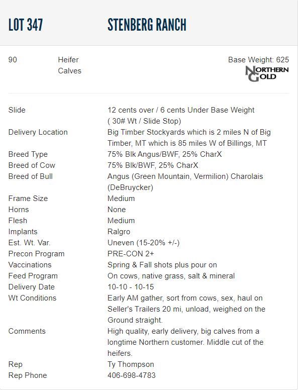 CommentsHigh quality, early delivery, big calves from a longtime Northern customer. Middle cut of the heifers.