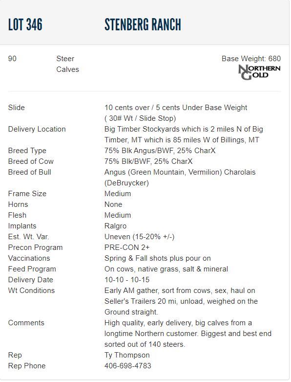 CommentsHigh quality, early delivery, big calves from a longtime Northern customer. Biggest and best end sorted out of 140 steers.