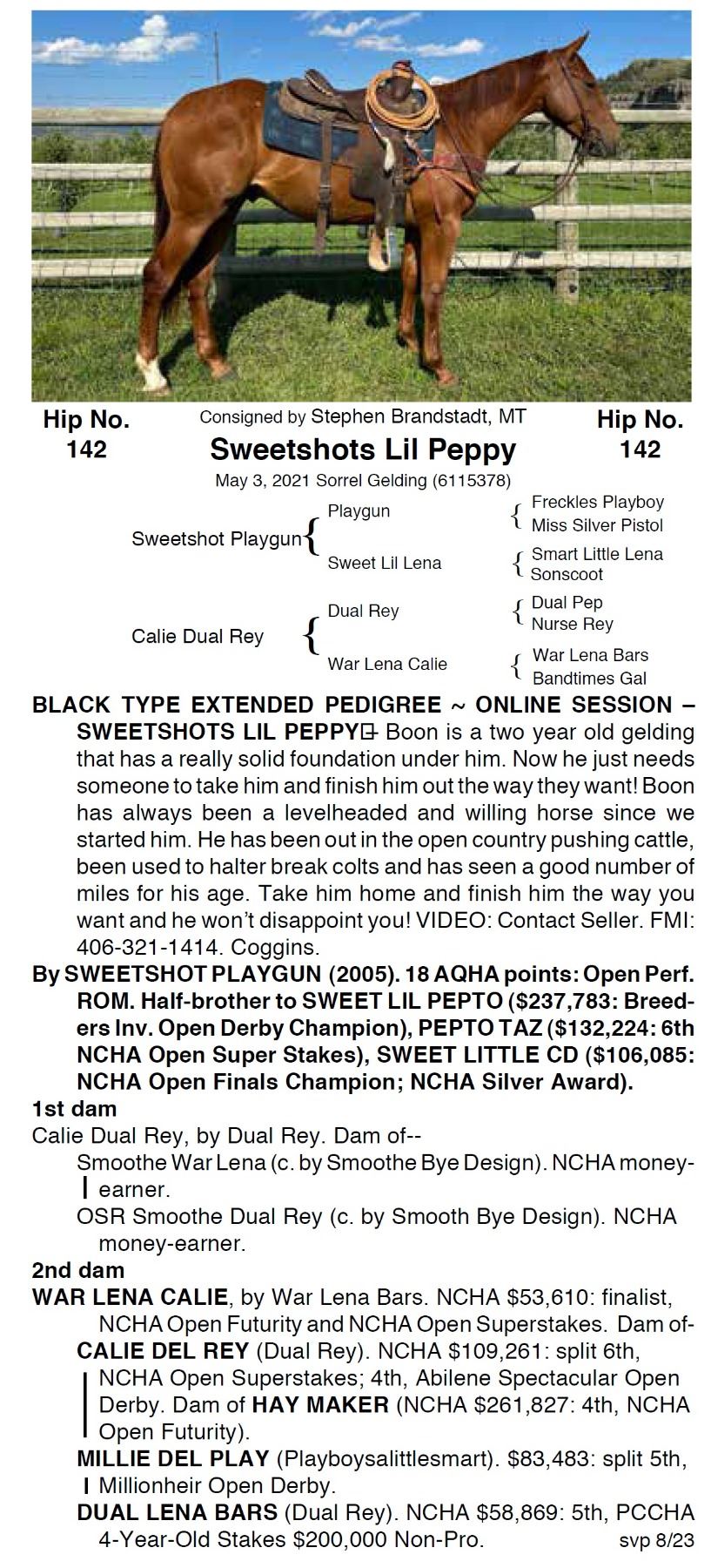 ALL AUGUST 26 SALE HORSES WILL BE AUCTIONED LIVE AT BILLINGS LIVESTOCK – Internet bidding also available for Online/ ShowCase Internet Sale Session horses offered in this sale
