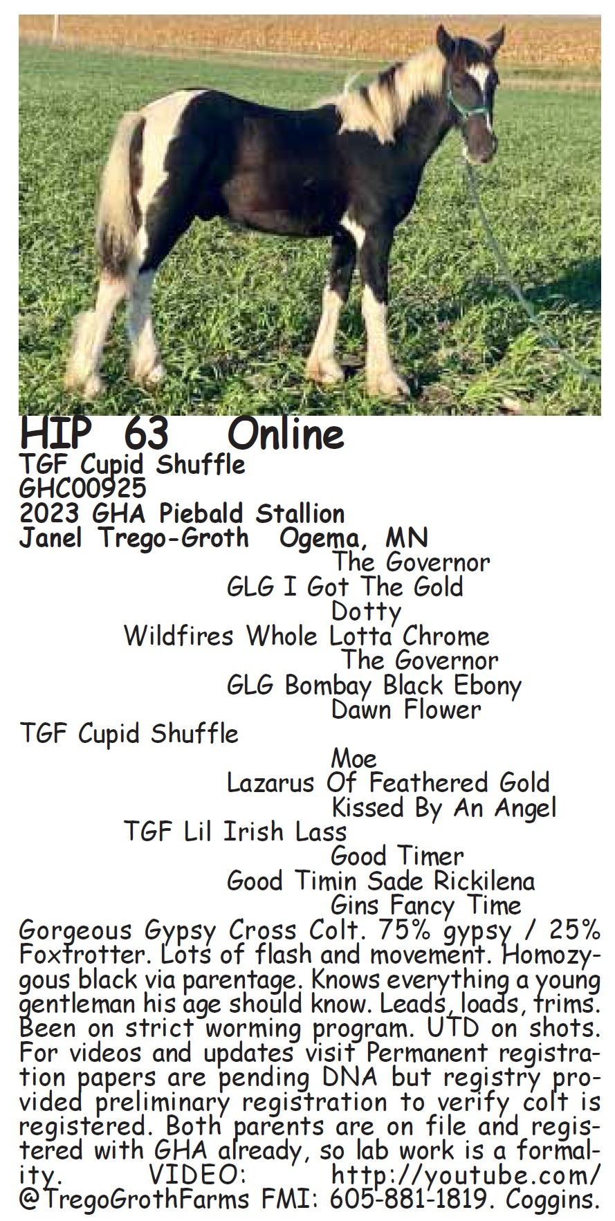 horses after the sale. Consignors will assist with holding of animals pending transport and assist with transport arrangements where noted in footnotes on individual horses.