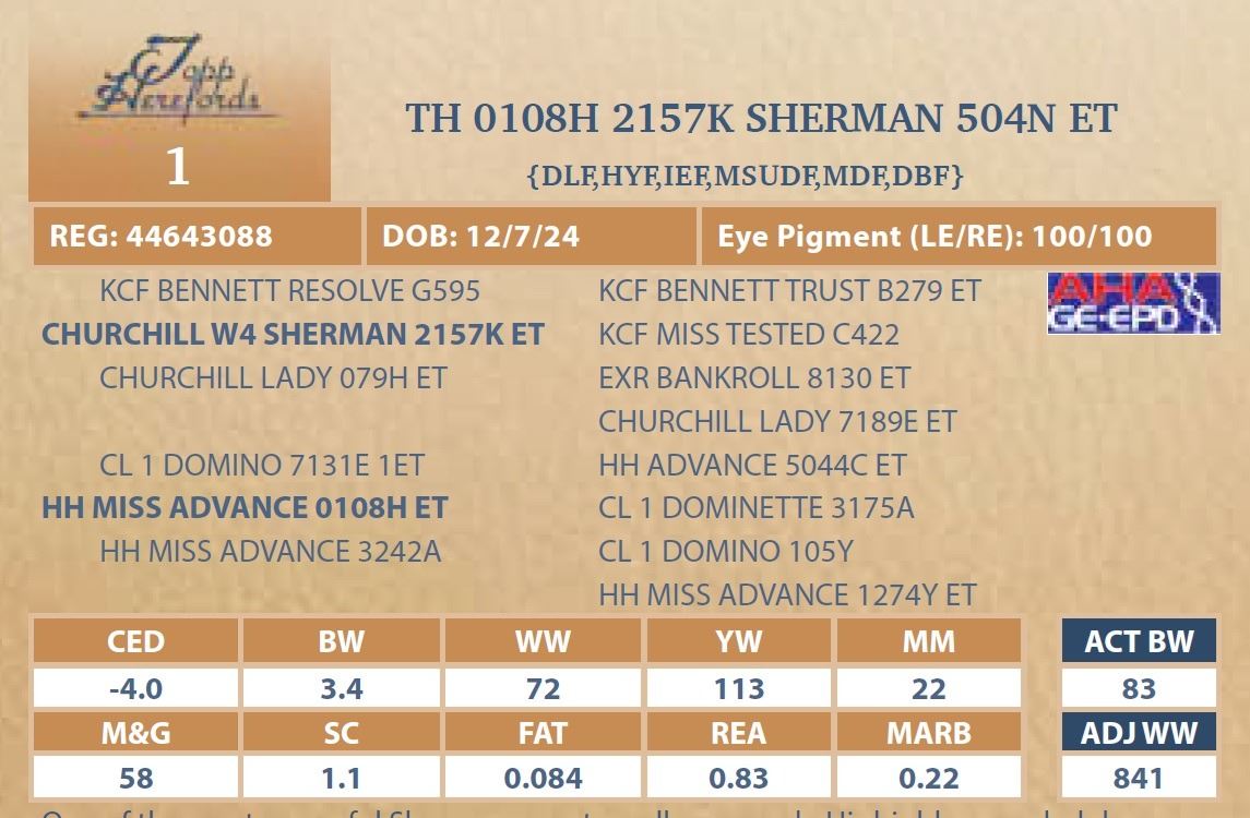 bull will be located at Topp Herefords or you