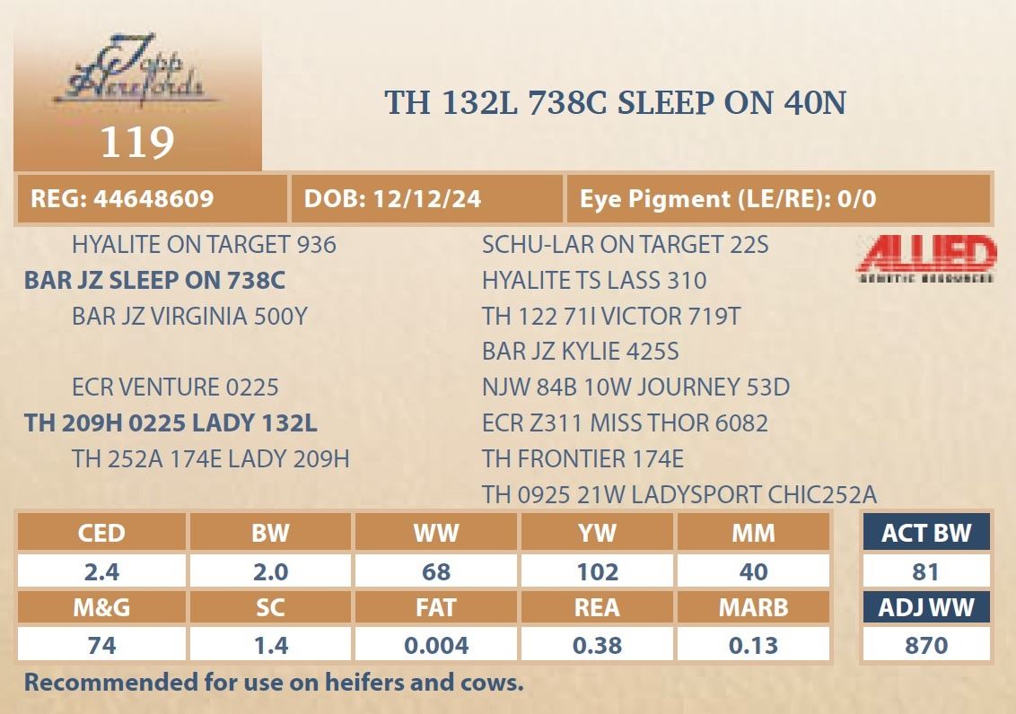 bull will be located at Topp Herefords or you
