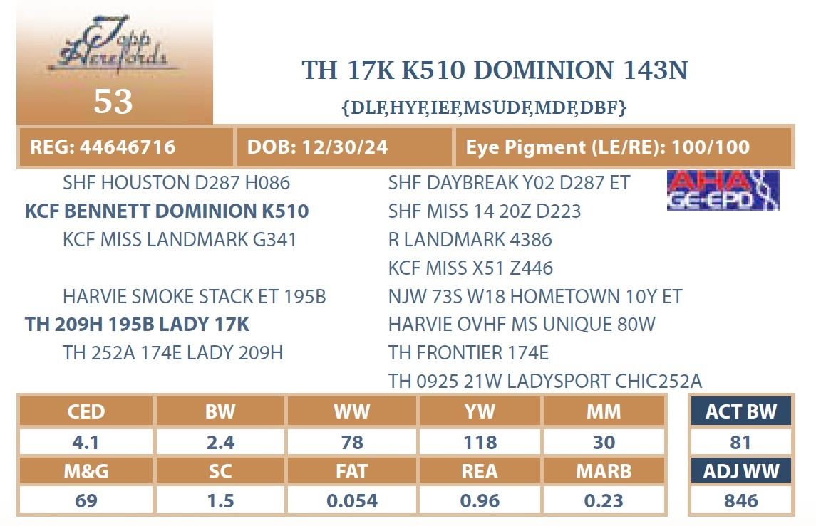 bull will be located at Topp Herefords or you
