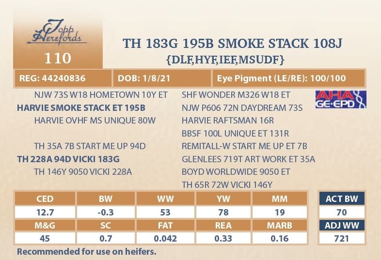 bull will be located at Topp Herefords or you