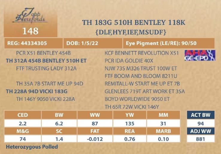 bull will be located at Topp Herefords or you