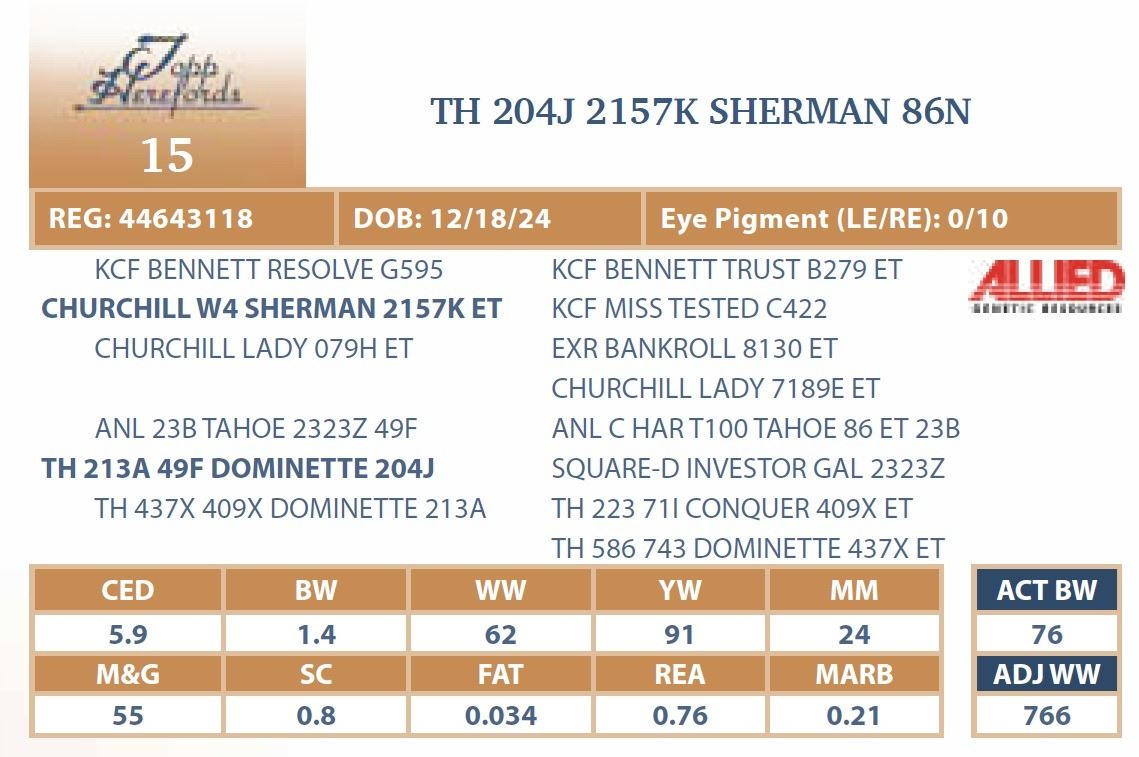 bull will be located at Topp Herefords or you