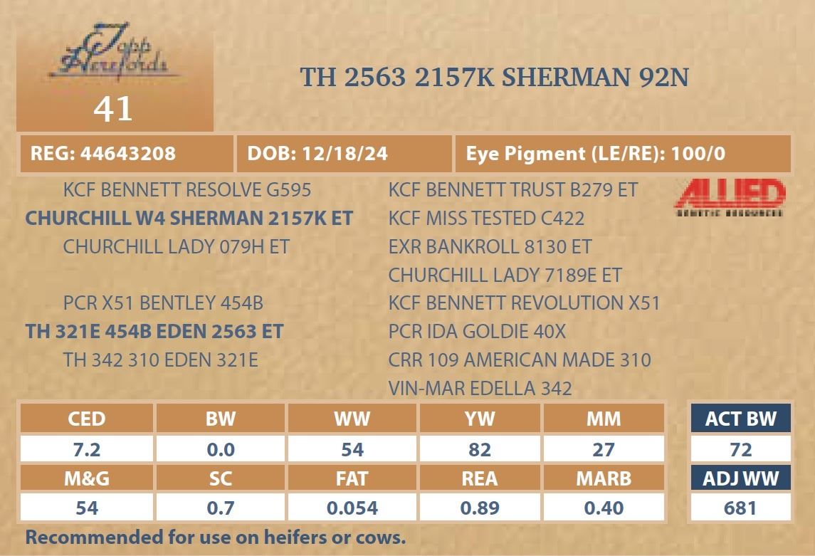 bull will be located at Topp Herefords or you