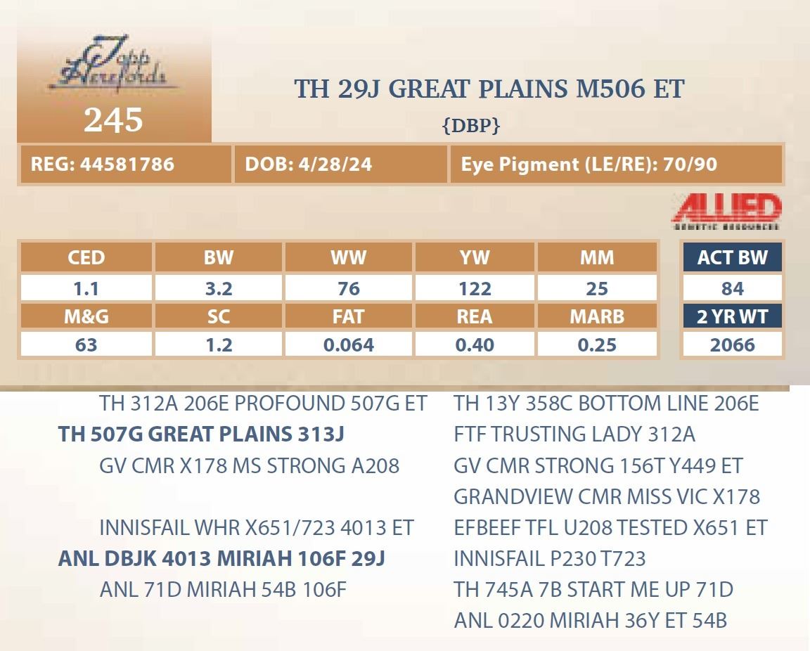 bull will be located at Topp Herefords or you