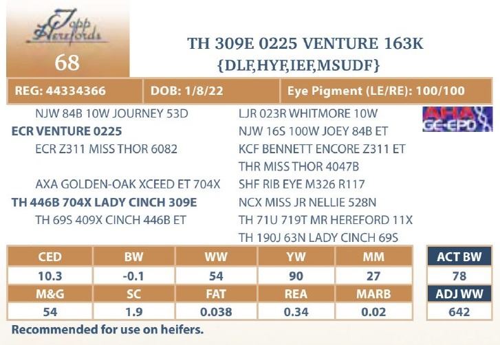 bull will be located at Topp Herefords or you
