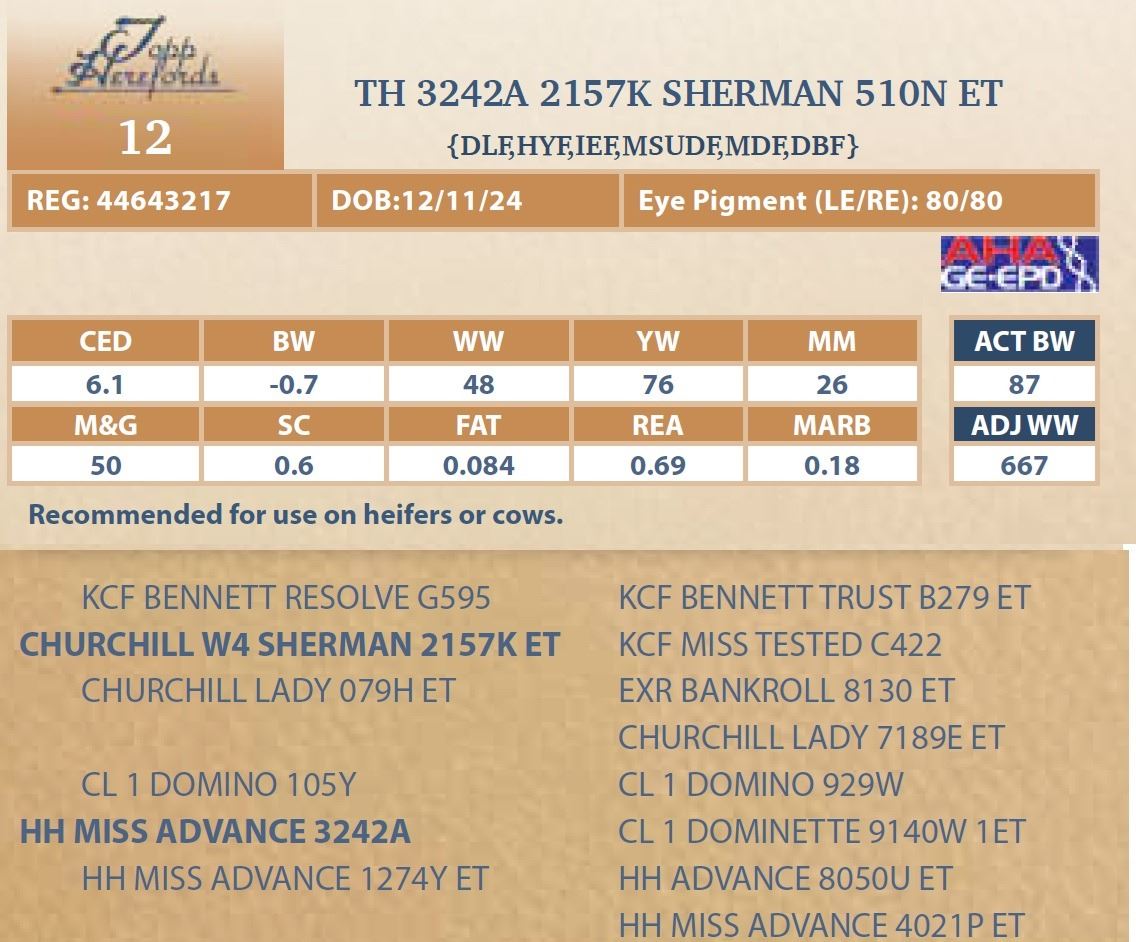Yearling Registered Herford Bull