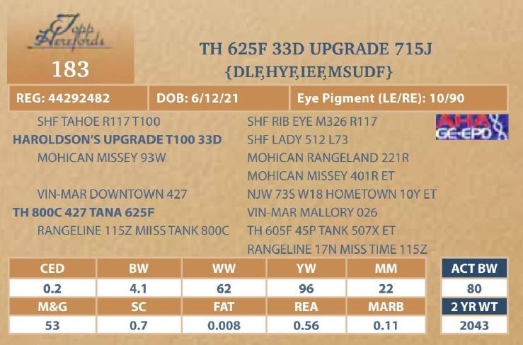 bull will be located at Topp Herefords or you