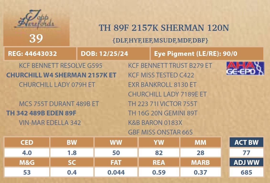 bull will be located at Topp Herefords or you
