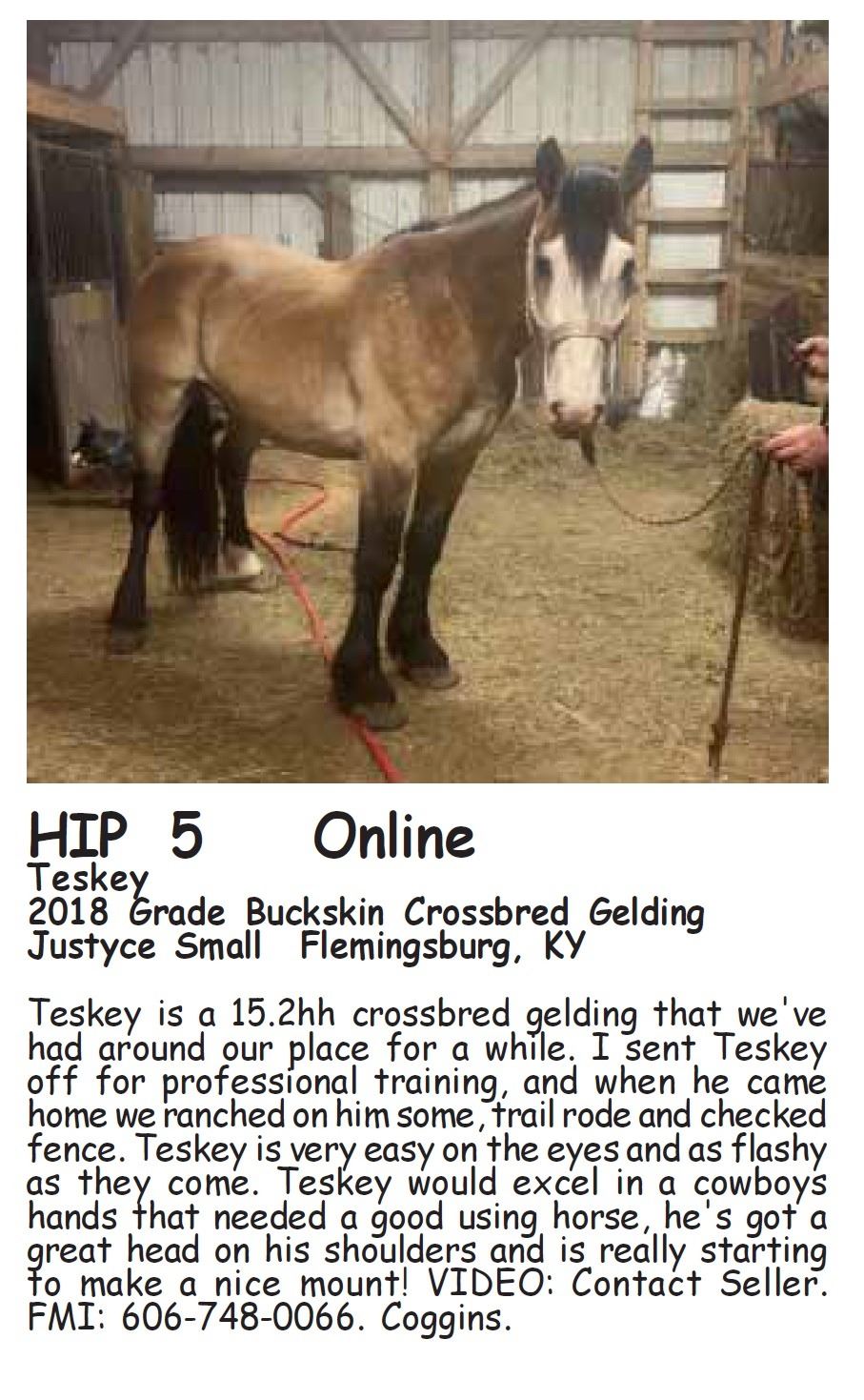 6. There is no guarantee of any kind as to the soundness or condition or other quality of any horse sold in this sale. Once the sale closes the sale is final.