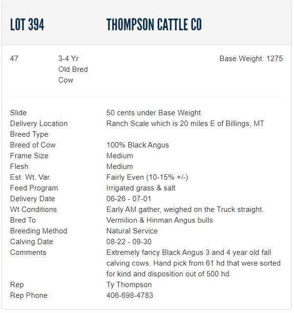 CommentsExtremely fancy Black Angus 3 and 4 year old fall calving cows. Hand pick from 61 hd that were sorted for kind and disposition out of 500 hd.