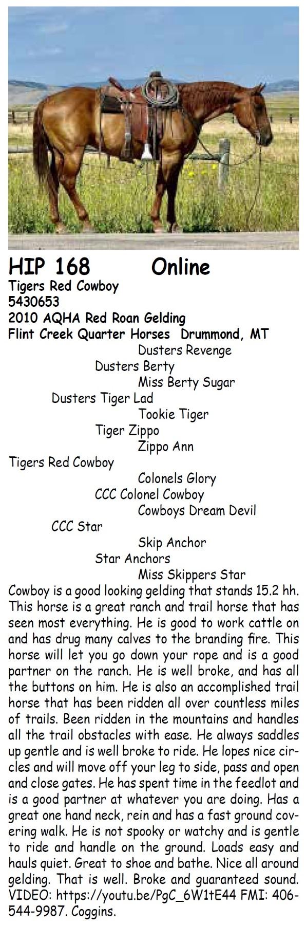 ALL AUGUST 26 SALE HORSES WILL BE AUCTIONED LIVE AT BILLINGS LIVESTOCK – Internet bidding also available for Online/ ShowCase Internet Sale Session horses offered in this sale
