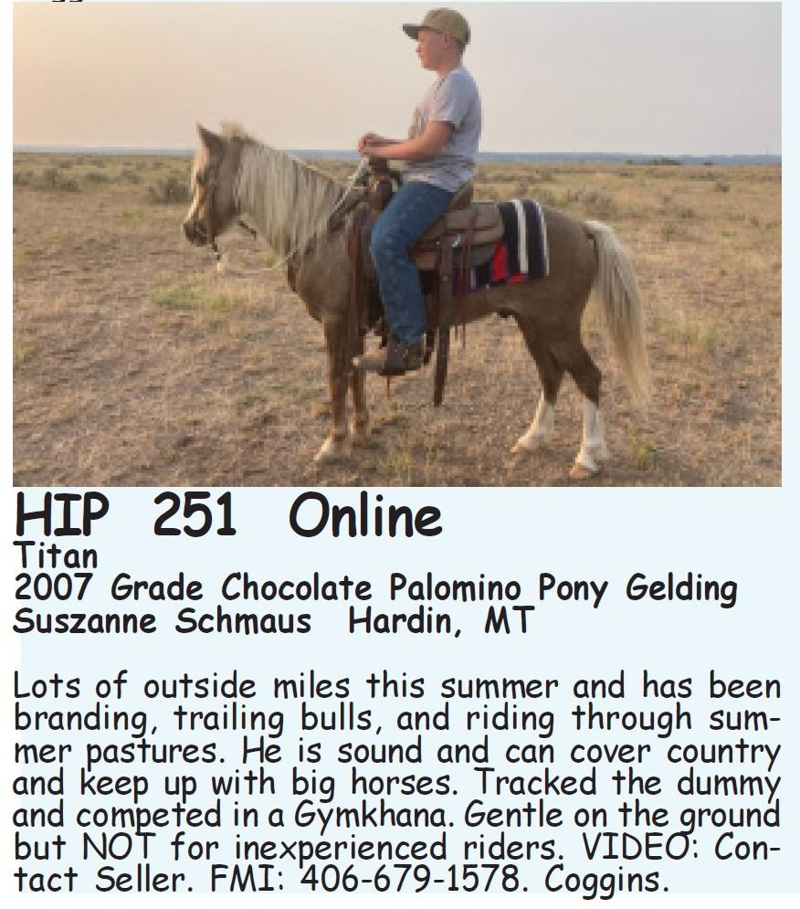 4. Horses are offered for sale according to the laws of the State of Montana, and the right to bid is reserved for all sellers in this sale.