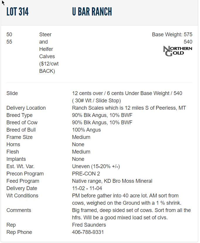 Wt ConditionsPM before gather into 40 acre lot. AM sort from cows, weighed on the Ground with a 1 % shrink.