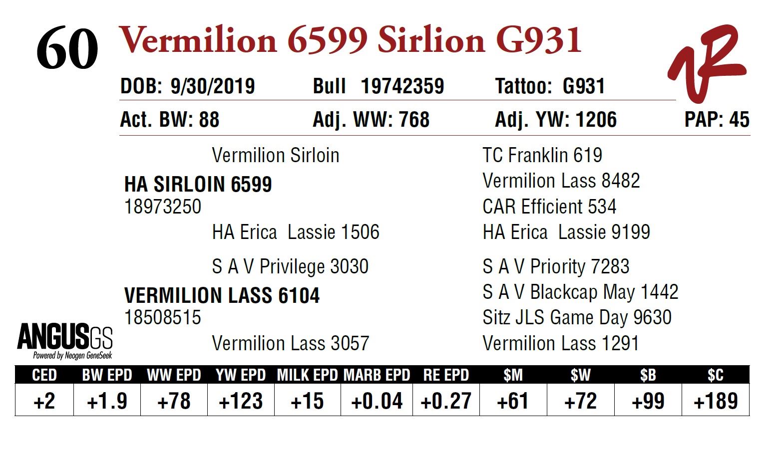 All bulls will be covered 50% by Vermilion Ranch if they are injured during their first breeding season. Breeding season is defined as the 60-day period following the first turnout of bulls.