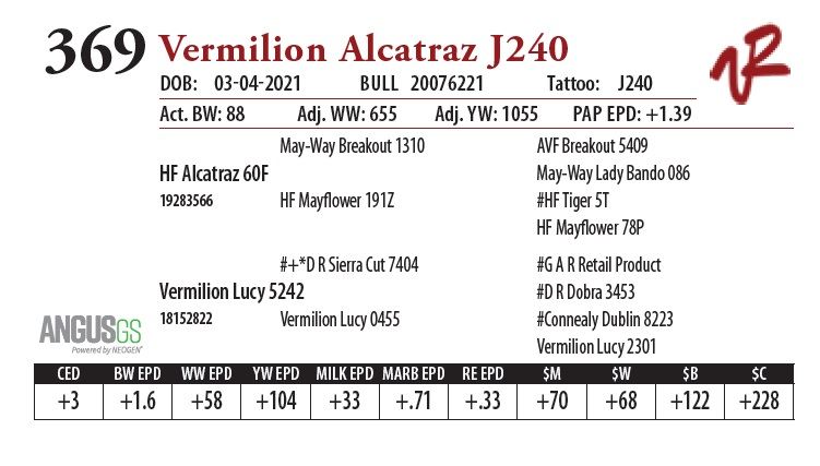 All bulls will be covered 50% by Vermilion Ranch if they are injured during their first breeding season. Breeding season is defined as the 60-day period following the first turnout of bulls.