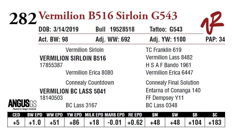 All bulls will be covered 50% by Vermilion Ranch if they are injured during their first breeding season. Breeding season is defined as the 60-day period following the first turnout of bulls.