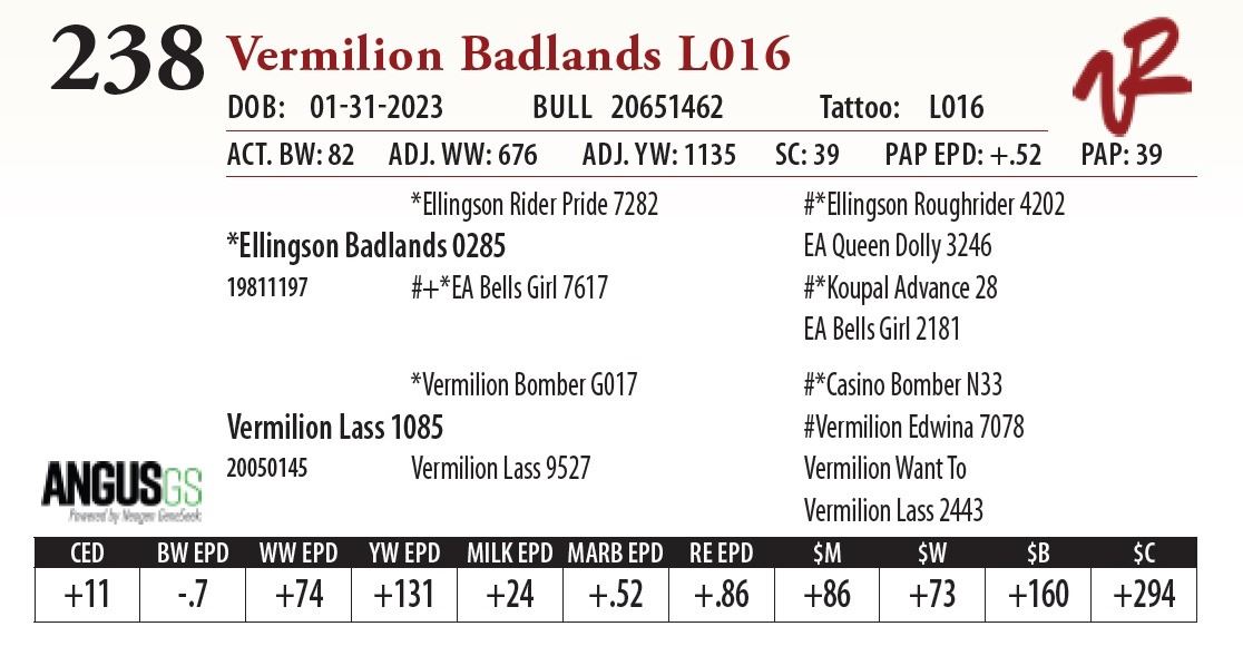 All bulls will be covered 50% by Vermilion Ranch if they are injured during their first breeding season. Breeding season is defined as the 60-day period following the first turnout of bulls.