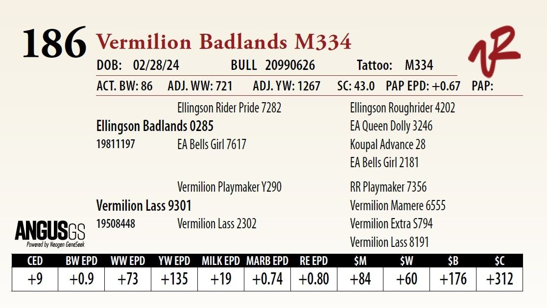 All bulls will be covered 50% by Vermilion Ranch if they are injured during their first breeding season. Breeding season is defined as the 60-day period following the first turnout of bulls.