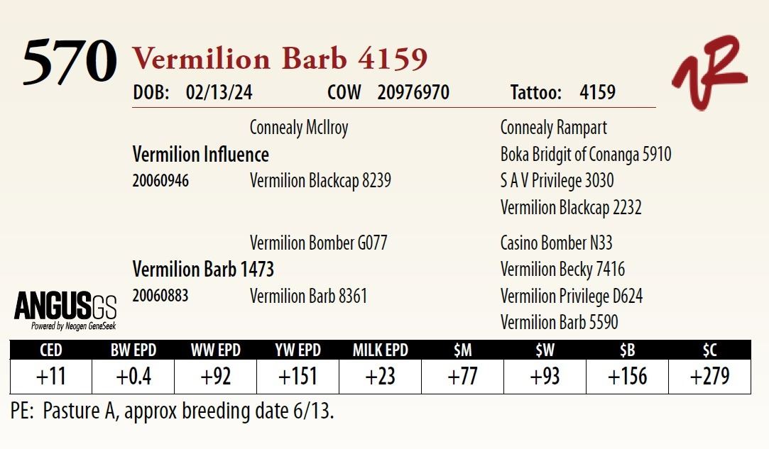 All bulls will be covered 50% by Vermilion Ranch if they are injured during their first breeding season. Breeding season is defined as the 60-day period following the first turnout of bulls.