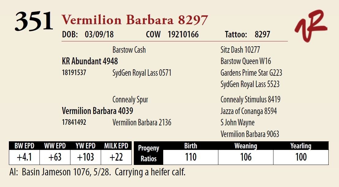 All bulls will be covered 50% by Vermilion Ranch if they are injured during their first breeding season. Breeding season is defined as the 60-day period following the first turnout of bulls.