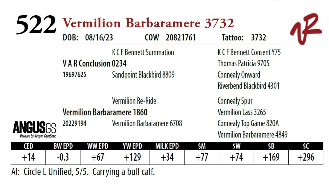 All bulls will be covered 50% by Vermilion Ranch if they are injured during their first breeding season. Breeding season is defined as the 60-day period following the first turnout of bulls.