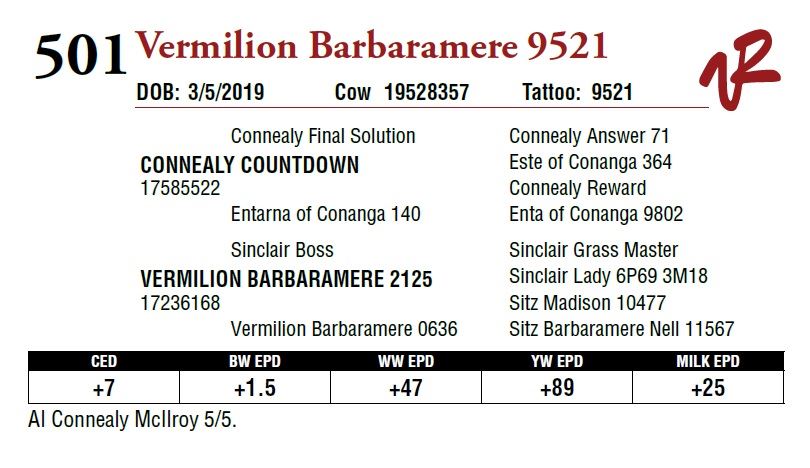 All bulls will be covered 50% by Vermilion Ranch if they are injured during their first breeding season. Breeding season is defined as the 60-day period following the first turnout of bulls.