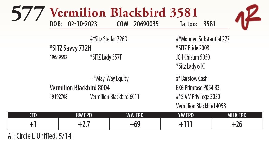 All bulls will be covered 50% by Vermilion Ranch if they are injured during their first breeding season. Breeding season is defined as the 60-day period following the first turnout of bulls.