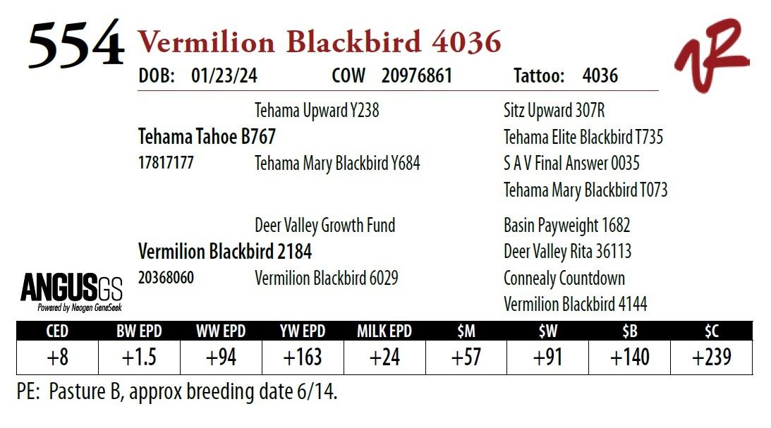 All bulls will be covered 50% by Vermilion Ranch if they are injured during their first breeding season. Breeding season is defined as the 60-day period following the first turnout of bulls.