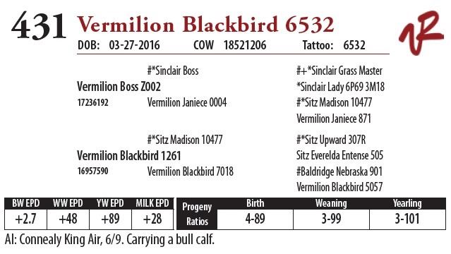 All bulls will be covered 50% by Vermilion Ranch if they are injured during their first breeding season. Breeding season is defined as the 60-day period following the first turnout of bulls.