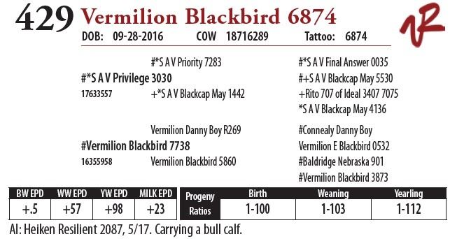 All bulls will be covered 50% by Vermilion Ranch if they are injured during their first breeding season. Breeding season is defined as the 60-day period following the first turnout of bulls.